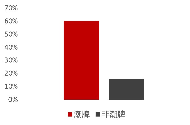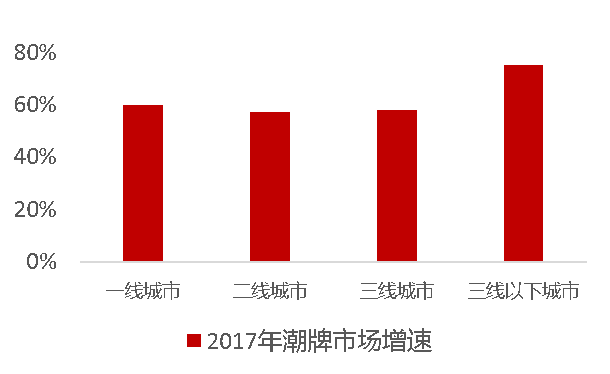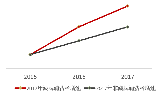 (3)2017年起,潮牌服裝市場(chǎng)規(guī)模增長(zhǎng)迅速,潮牌消費(fèi)增速是非潮牌的3.7倍。增長(zhǎng)速度達(dá)到62%,而非潮牌消費(fèi)增速是17%。潮牌的消費(fèi)者數(shù)量增幅完勝非潮牌。